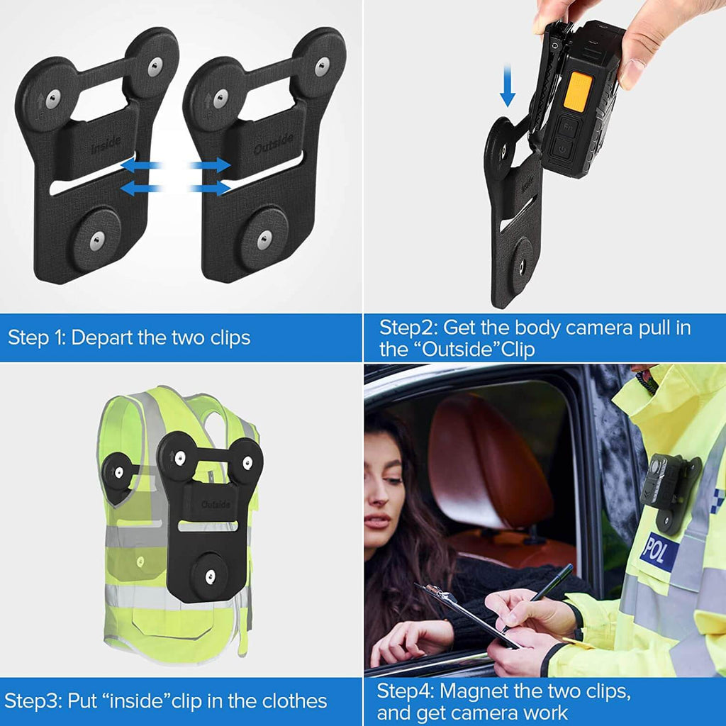 BOBLOV Magnetic Suction Back Clip Contains Magnets Inside and Outside with Strong Suction Make from Black Silica Gel can Stick to Clothes for Universal Law Enforcement Body Camera