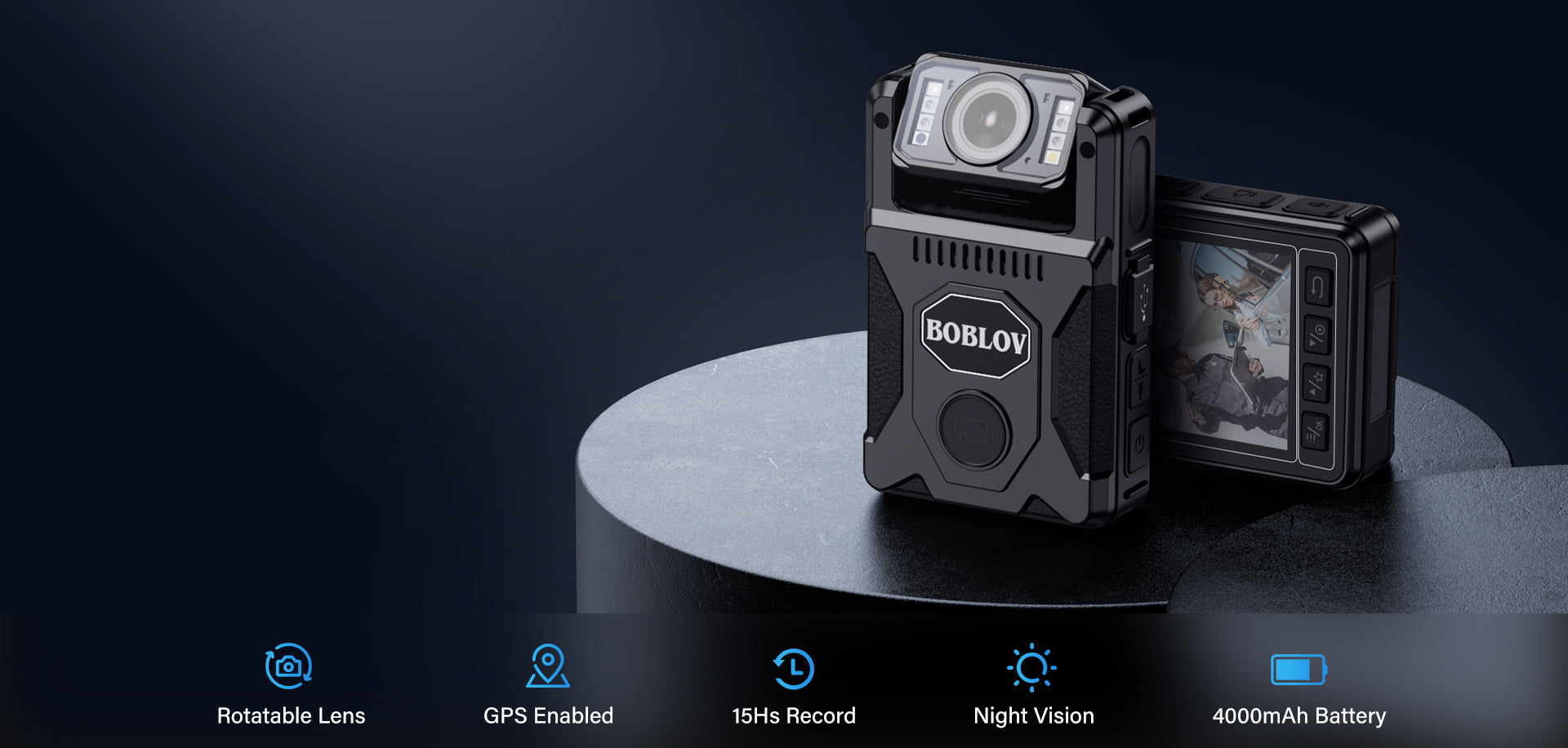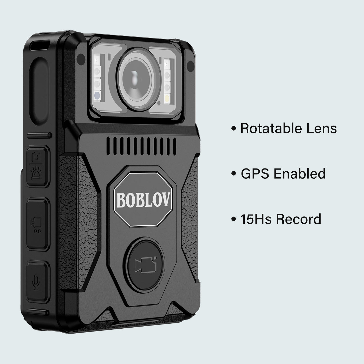 BOBLOV M7 128GB GPS Body Camera, 180° Rotate BodyCam, 13-15 Hrs Recording, Type-C Port, Quick Charging